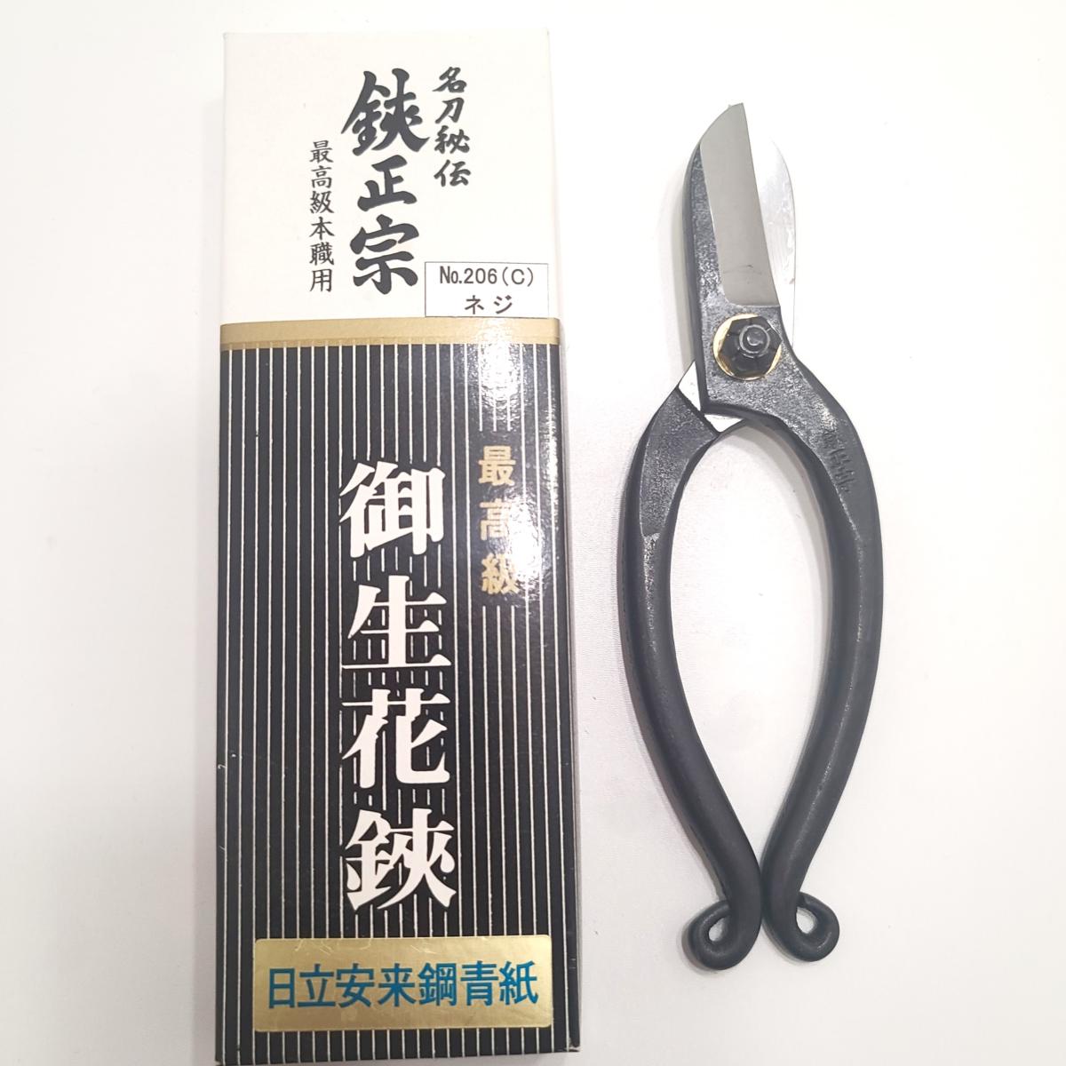 Traditional Japanese ikebana scissors made from hardened Aogami steel with a very high carbon content from the MASAMUNE brand, offering unrivalled lightness and strength.